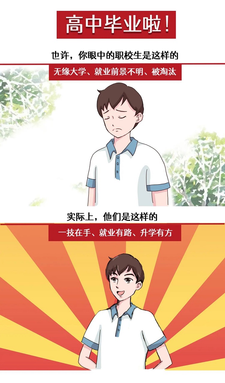 九年寒窗,你们即将完成义务教育阶段学业,站在人生的十字路口,你们迎来了人生第一次重要选择,摆在你们面前的是普高和中职两条道路,是选择上普通高中还是上中职学校呢?你们可要想好哦!