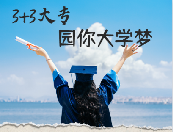 入学直接报名3+3(报学校,以中考成绩从高分入取至名额满。个别专业有中考成绩限制)